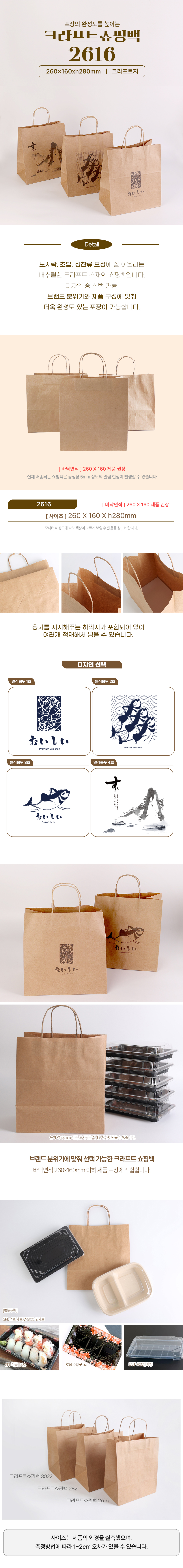 크라프트쇼핑백 2616 디자인4종